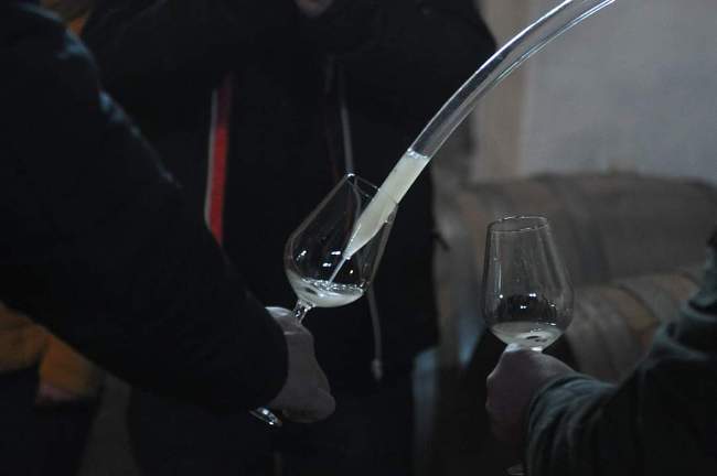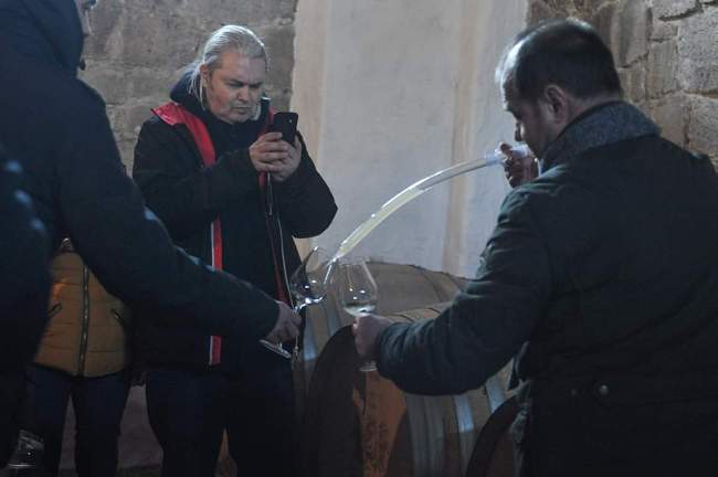 Micul nostru grup a avut privilegiul de a degusta, din baricuri, Fetească Neagră 2017, Merlot 2017 și Chardonnay 2018, create cu procedeele descrise de oenolog.